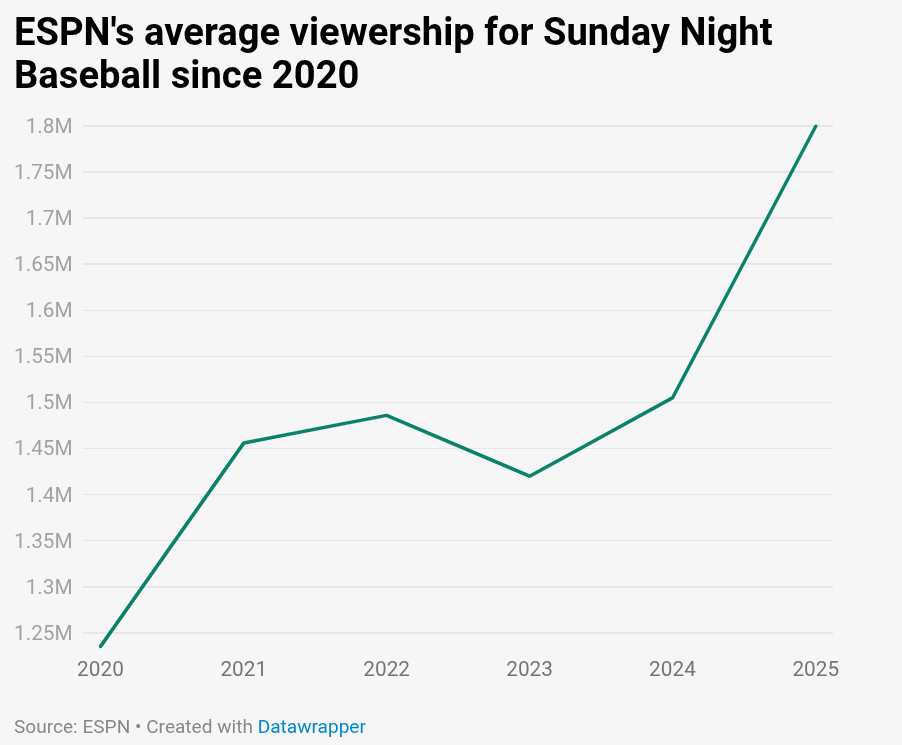 So basically, no matter what you look at — sponsorship dollars, viewership numbers, etc. — MLB seems to be doing fine.