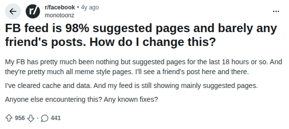 When “keeping in touch with friends and family” is the #1 reason given for using social media, but that social media suddenly becomes 98% not friends and family, people are probably going to either abandon your app… or they’re going to use it in a way that lets them keep in touch with friends and family.