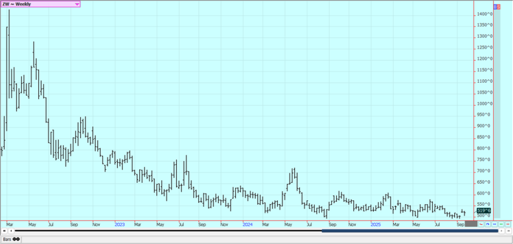 Rice: Rice was lower in quiet trading last week. The market remained in a trading range. The harvest is wrapping up in Texas and southern Louisiana. Harvest is active in Mississippi and Arkansas. Chart trends are mixed on the charts.