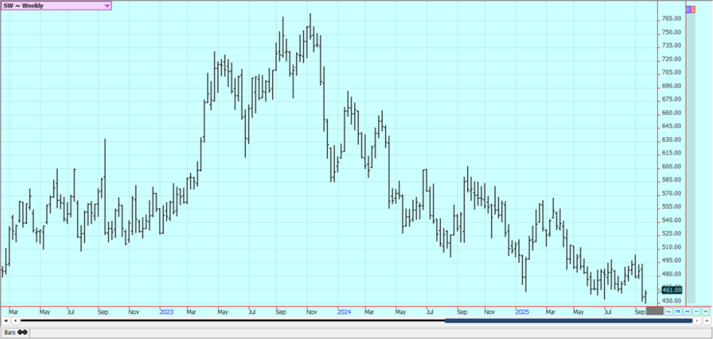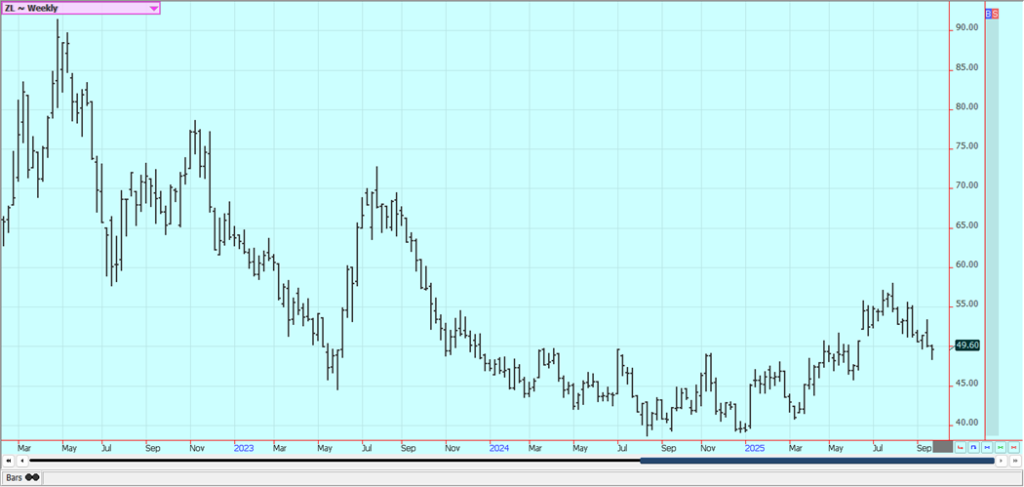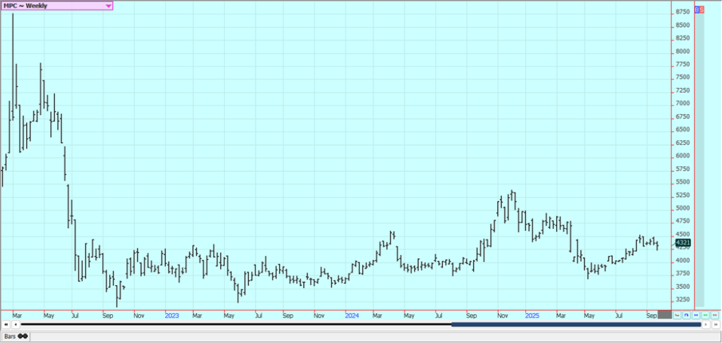 The Canadian government is moving now to support farmers in the face of the Chinese demand loss and also in the face of the Trump tariffs. Trends are mixed to down on the daily charts and on the weekly charts.