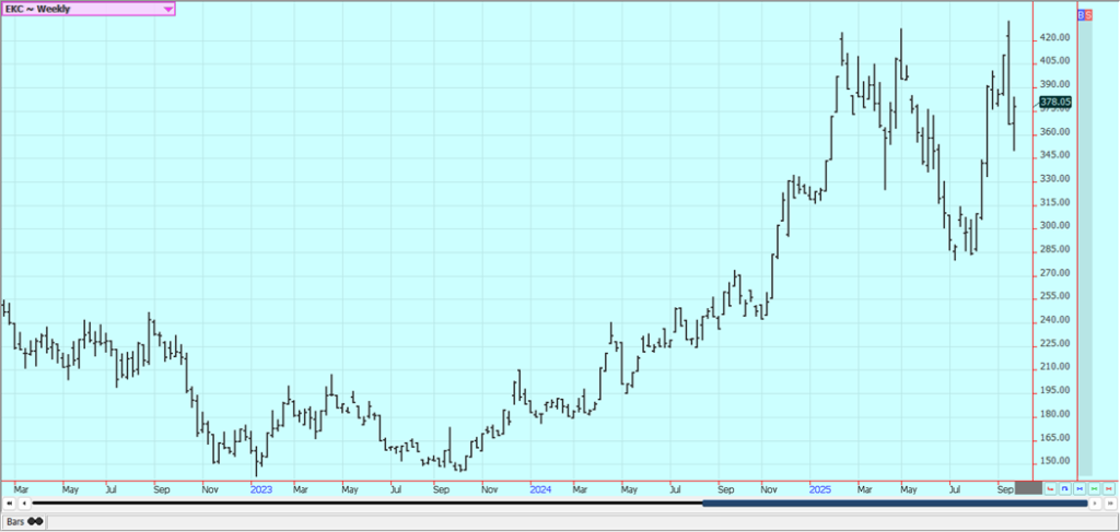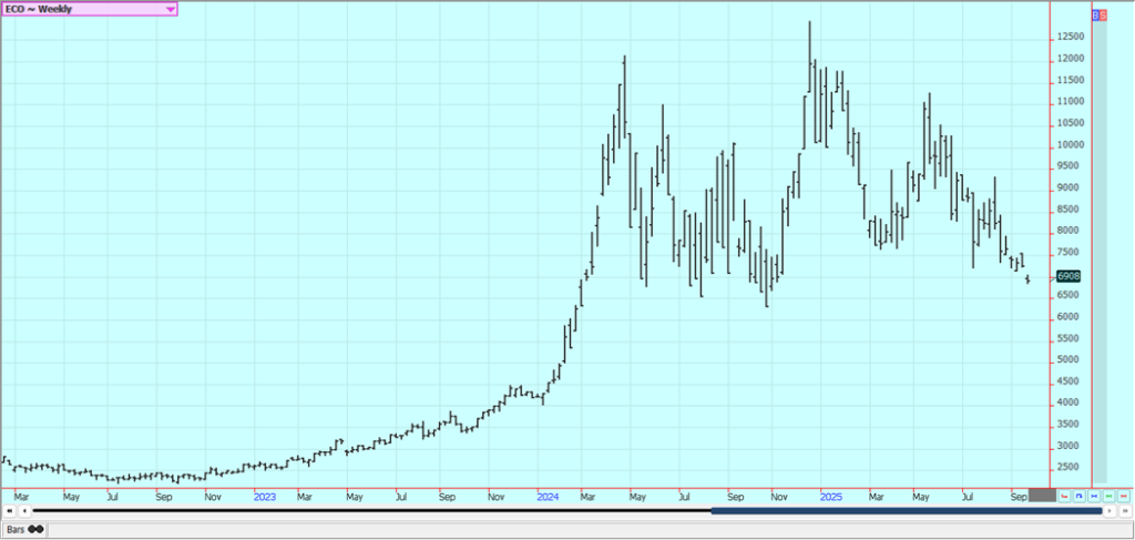 Cocoa: Both markets closed lower in narrow range trading last week as demand concerns in West Africa continue. US demand has been weakening due to the increased prices inside the US from the Trump tariffs and world demand is thought zto be weaker due to higher prices. There are still reports of in-creased production potential in other countries outside of West Africa, including Asia and Central Amer-ica.