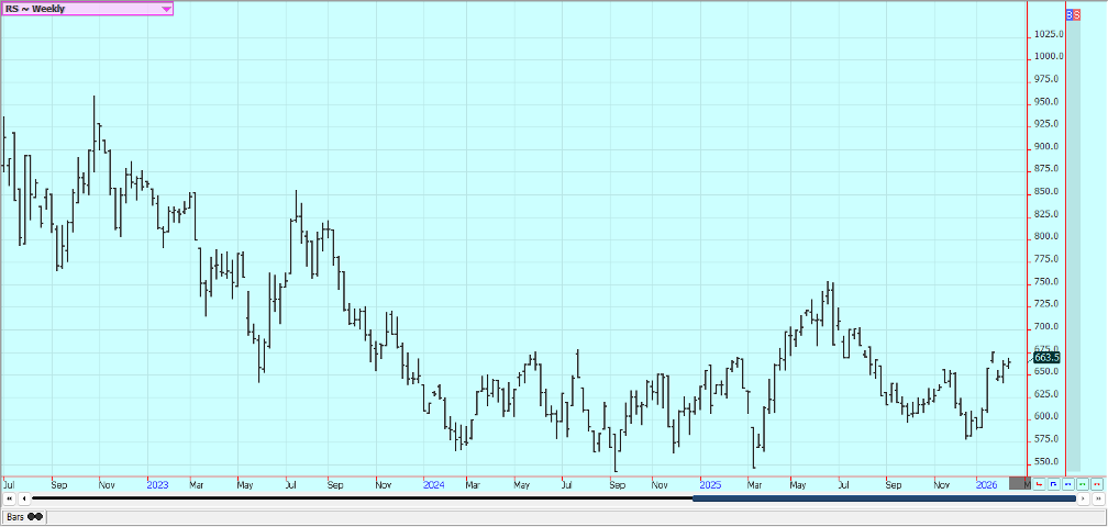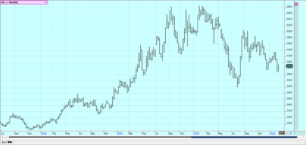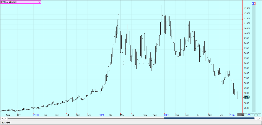 Coffee: Both coffee markets closed higher last week in sideways trading as good weather for growing and coffee harvesting continues to be seen in Brazil and Vietnam. Coffee production ideas are high in both countries. The trends are mixed in New York and mixed in London on the daily charts. There are still reports of coffee harvest sales from Vietnam as the new harvest is active.