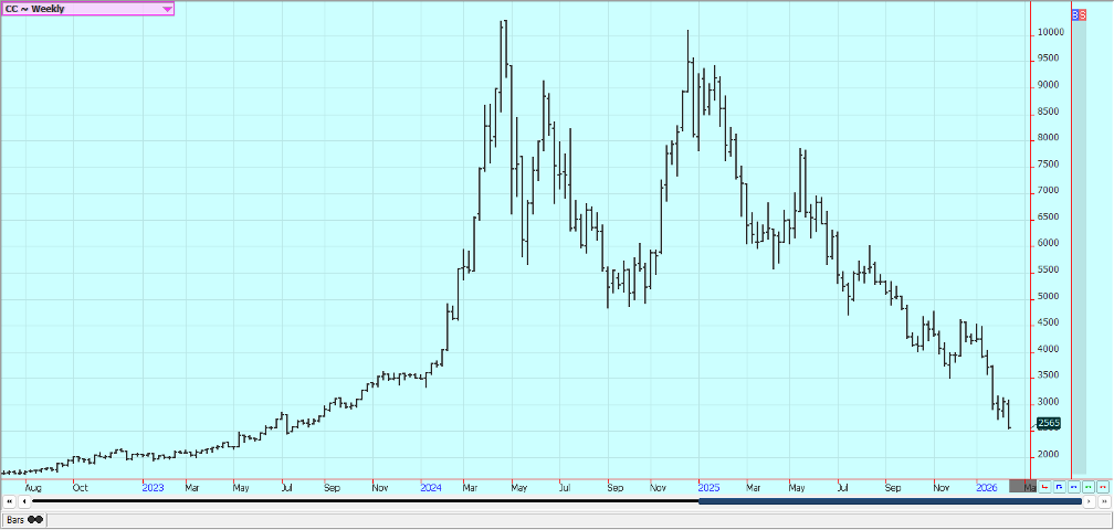 Cocoa: New York and London closed lower on speculative selling last week. Short term trends are turning down in both markets. A big main crop harvest has arrived in West Africa and rains have been positive for the next crop. There are still reports of increased production potential in other countries outside of West Africa, including Asia and Central America.