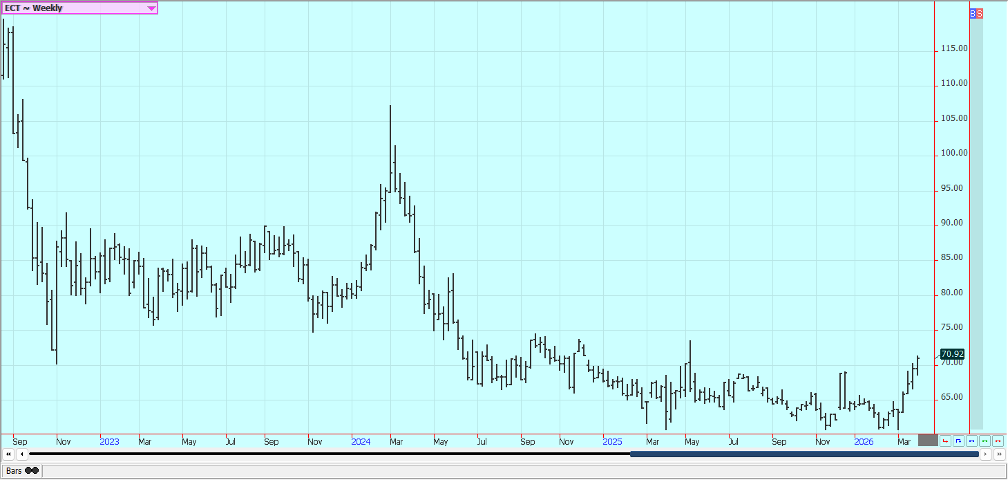 The war has increased world petroleum prices and could divert demand from Sugar production to production of ethanol. Trends are mixed on the daily charts in both markets. There are good supplies for the market from good growing conditions for cane and beets around the world. The prospect of a big global surplus in the 2025/26 season was keeping the market on the defensive but a rise in production in India and Thailand being offset by the war
