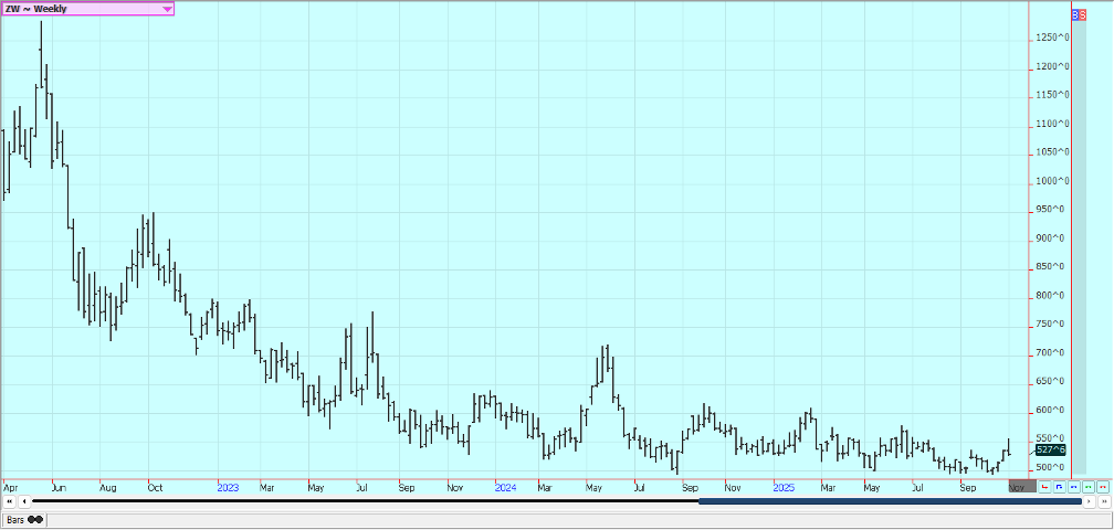 Wheat: Wheat closed lower last week after making new highs for the move as there has been no new China demand news or rumors. China had bought some cargoes of US Wheat a week ago but there has been no talk of any additional purchases. No USDA reports were released due to the government shutdown, but USDA will issue the November WASDE reports and production reports later this week.