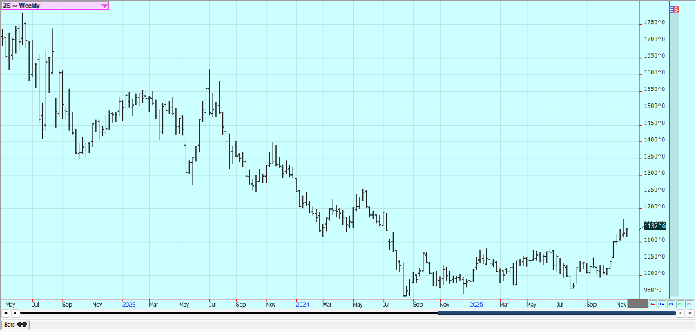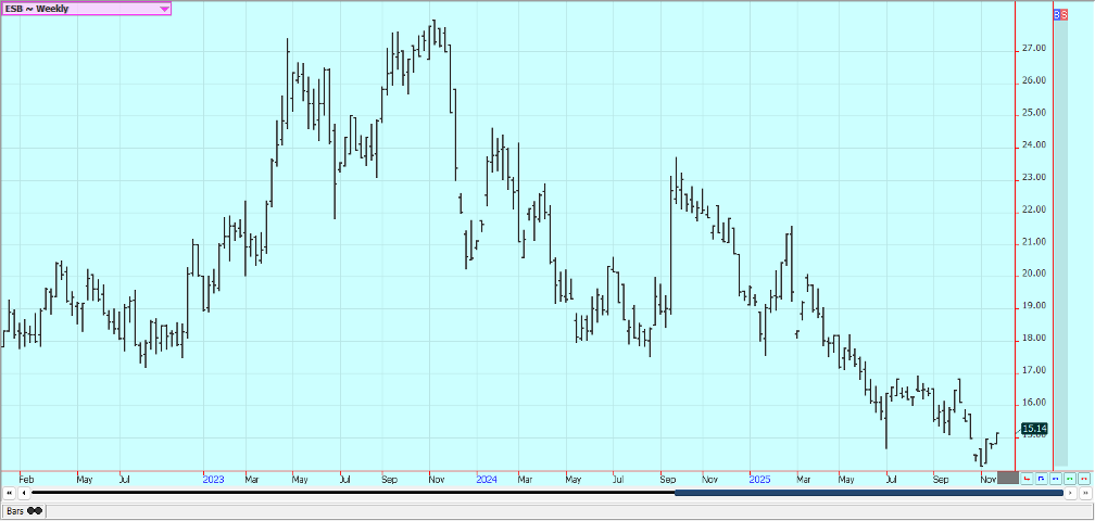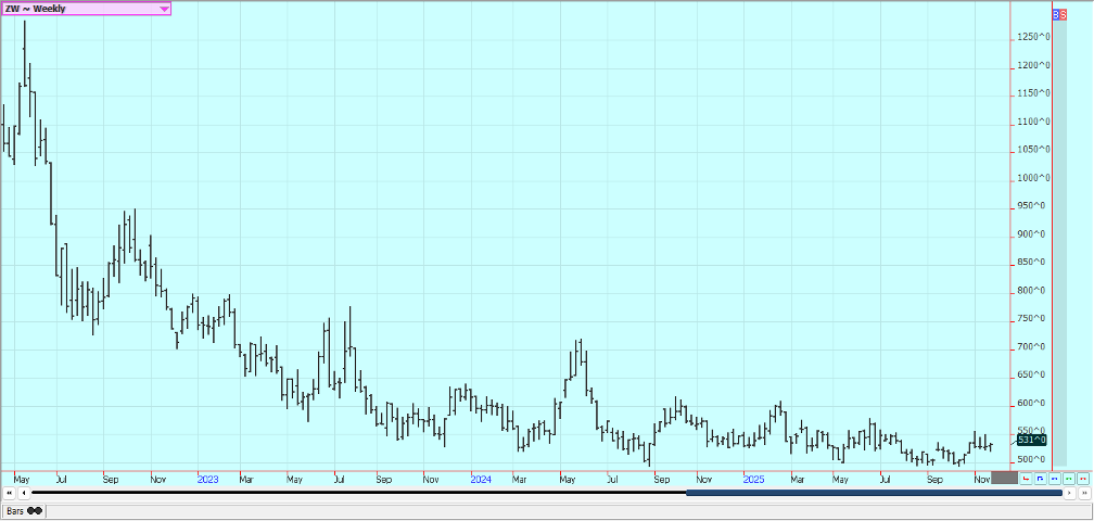 Cotton prices rose last week and may be forming a daily chart low. Demand remains quiet despite positive but dated export sales. Farmers are holding back due to low prices, and limited new Chinese buying continues to pressure the market. U.S. harvest is mostly complete with good yields, and India’s strong monsoon supports solid production prospects.