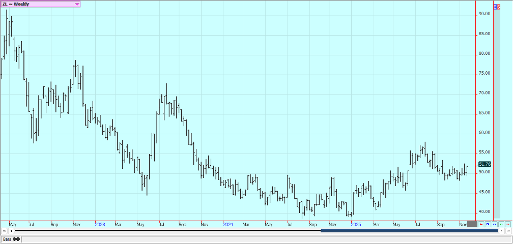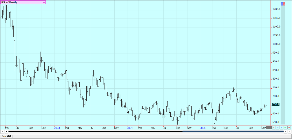 Palm Oil and Vegetable Oils: Palm Oil futures were a little higher last week despite fears of increasing production and weakening demand. There are still Indonesian plans to increase the use of Palm Oil in biofuels blends. There are still ideas of increasing production. The market sentiment overall is turning bearish on ideas of increasing stocks to the market and on some concerns about demand Canola was higher and moved back into the heart of the recent trading range on the daily charts. Trends are still mixed on the daily charts but up on the weekly charts.