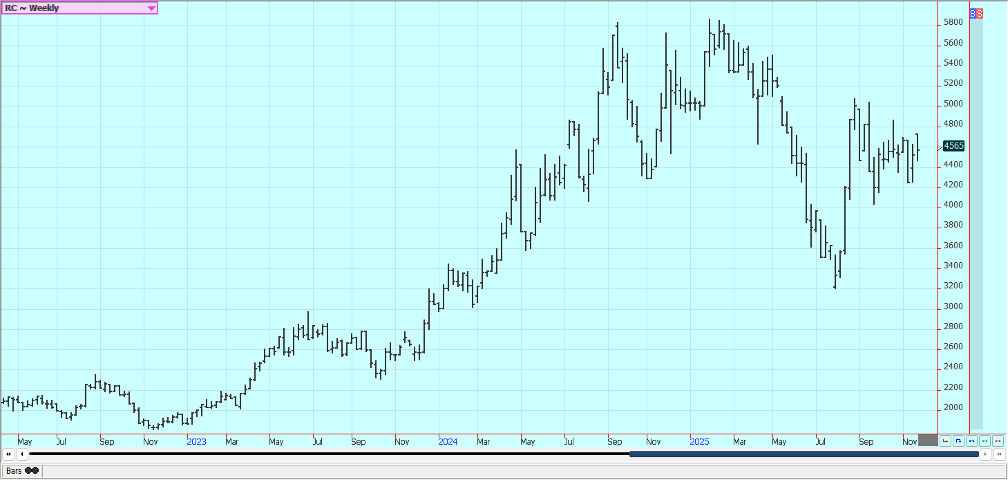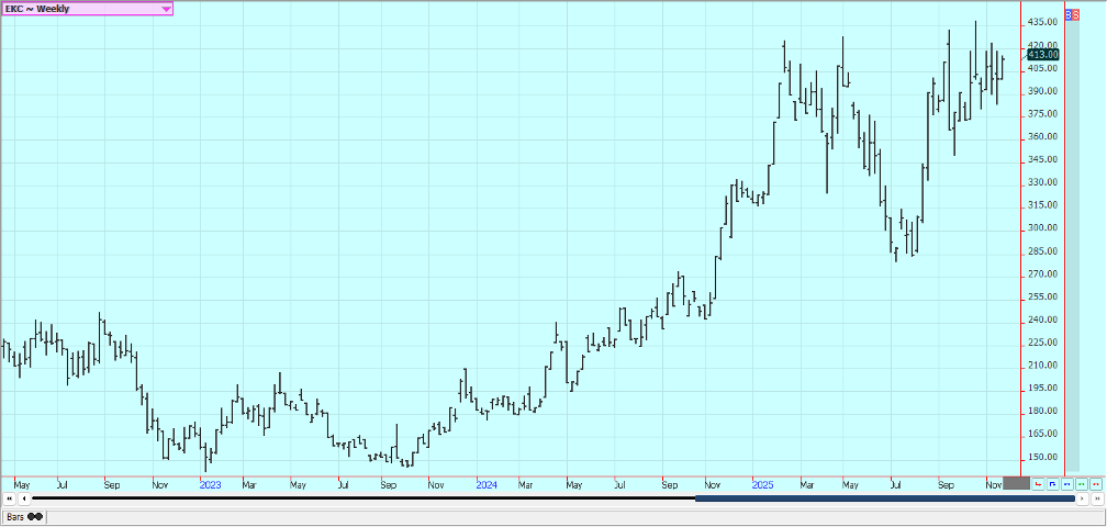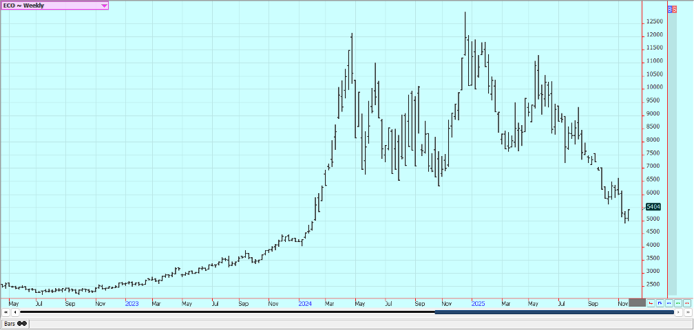 Cocoa: New York closed mixed and London closed a little higher last week. A big main crop harvest is anticipated in West Africa. Demand concerns in West Africa continue. Light rains mixed with heat in Ivory Coast’s cocoa-growing regions last week signaled a positive outlook for the main crop. There are still reports of increased production potential in other countries outside of West Africa, including Asia and Central America.