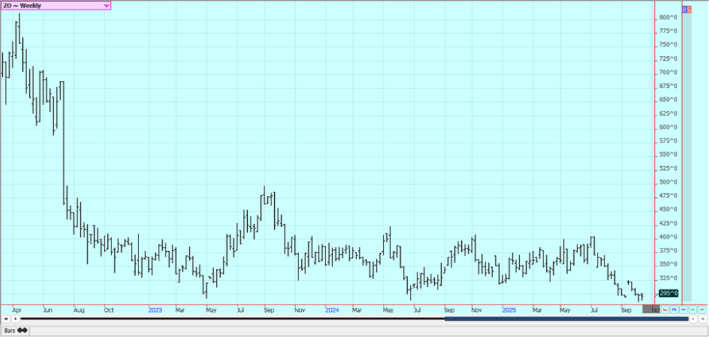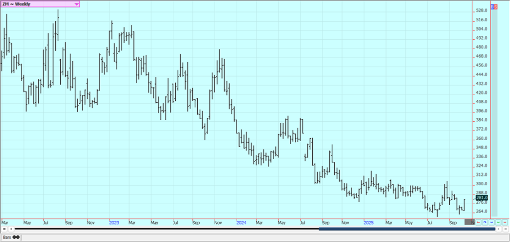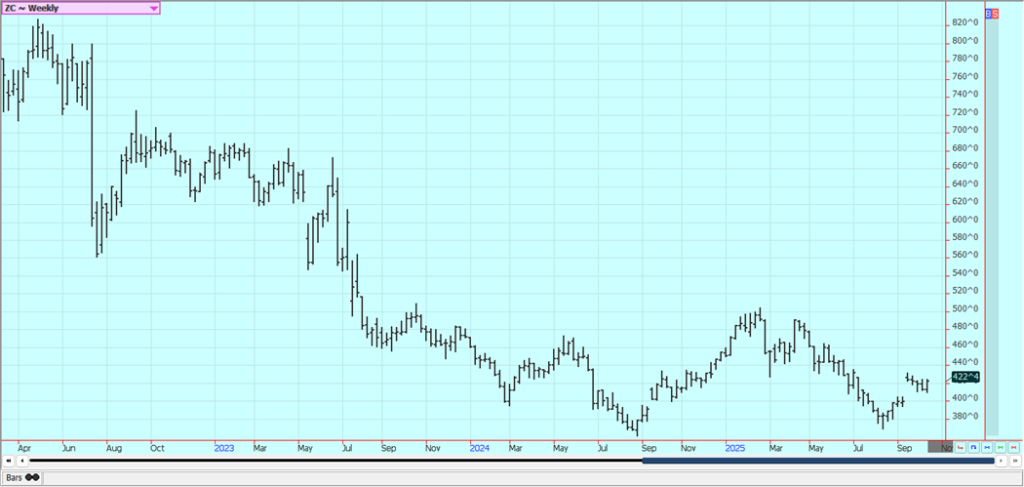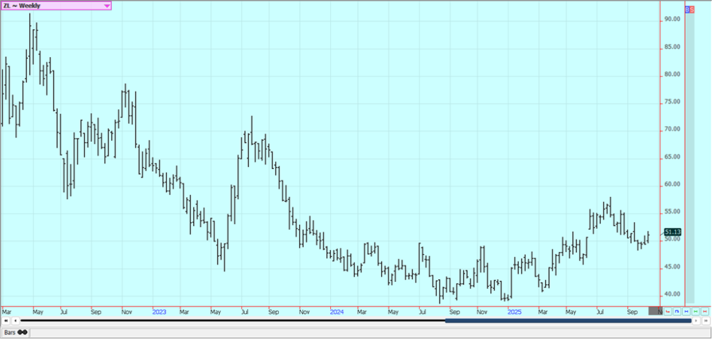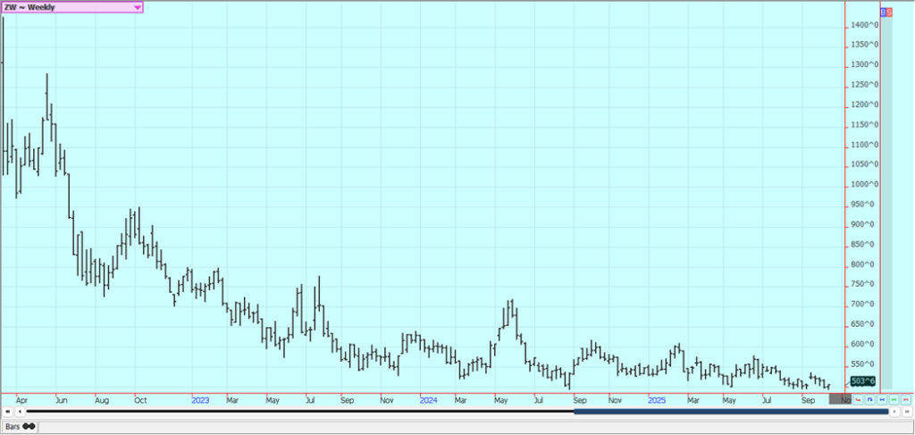 Cotton: Cotton was higher and chart trends started to turn up. The market hopes for positive news from the Trump-Xi meetings near the end of the month. There are no more USDA reports coming due to the closure. The US cotton harvest has started in most areas and initial yield reports are positive. However,, Cotton is not being sold by many producers as they wait for higher prices. There are still ideas that growing and harvesting conditions for cotton are generally good.