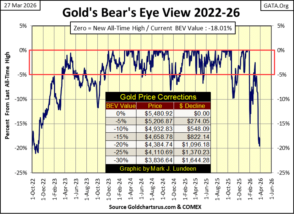 I question these declines, that have occurred while President Trump began bombing Iran in late February. Long ago, wars were a reason for gold and silver to go up, not down. But, it is what it is, and I believe these declines in gold, silver and the XAU are normal corrections in the precious metal assets.
