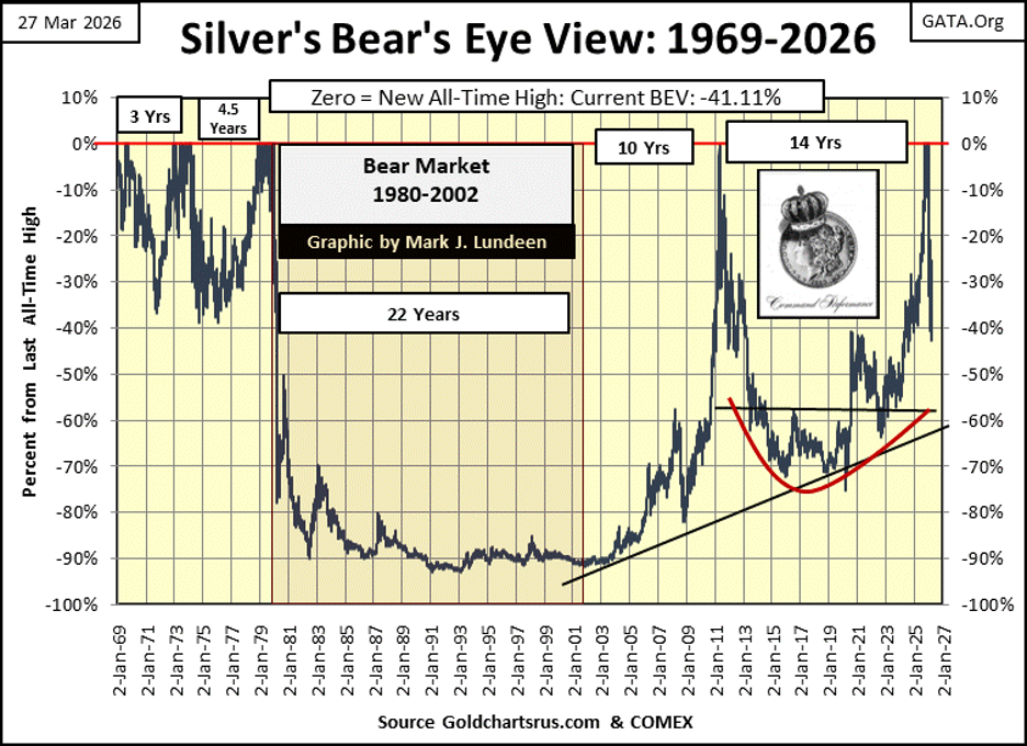 Note; in 2015-2016, the XAU was down by 80% from its last all-time highs of April 2011. Up here in the market’s peanut gallery, where I currently reside, I have more than a couple of beers and hotdogs it won’t get that bad in 2026!