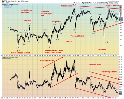 The oil/gold ratio has been favouring gold since a peak in 2008. That ratio is also at a level that could suggest a forthcoming low for oil. The events going forward will prove whether the cycles and signals are working in favour of oil. Wars in oil-producing nations are often the prime catalyst for rising prices. Iran and Venezuela fit the bill. And China is the main recipient of their oil exports. Add to this China’s export controls on a wide range of rare earths and now silver, all essential to U.S. industry. Tensions are growing between the U.S. and China. Is the target of the U.S.’s attacks on Venezuela and threats against Iran really China?