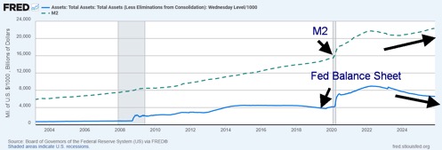 M2 and Fed Balance Sheet 2003–2025 $billions