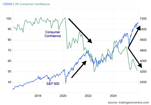 Stock Market vs. Consumer Confidence – The K Economy 2015–2025