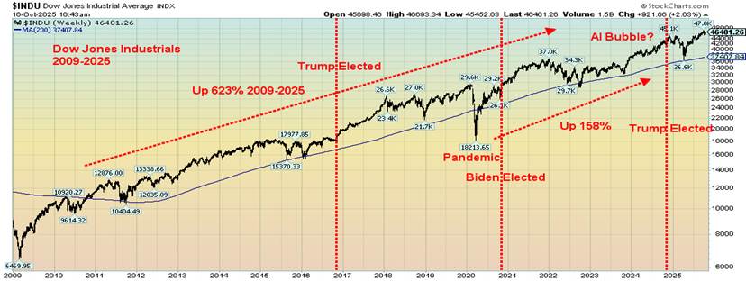 Signs abound the economy is slowing. The US government shutdown is now 19 days old and we could easily be threatening the longest shutdown of 35 days seen during Trump 1 administration 2018-2019. Protests are rising on the street as the “No Kings” march of October 18 attracts many protests in cities and potentially millions of participants. Trump is threatening war with Venezuela, the country with the world’s largest oil reserves, and Venezuela is putting its military on high alert.