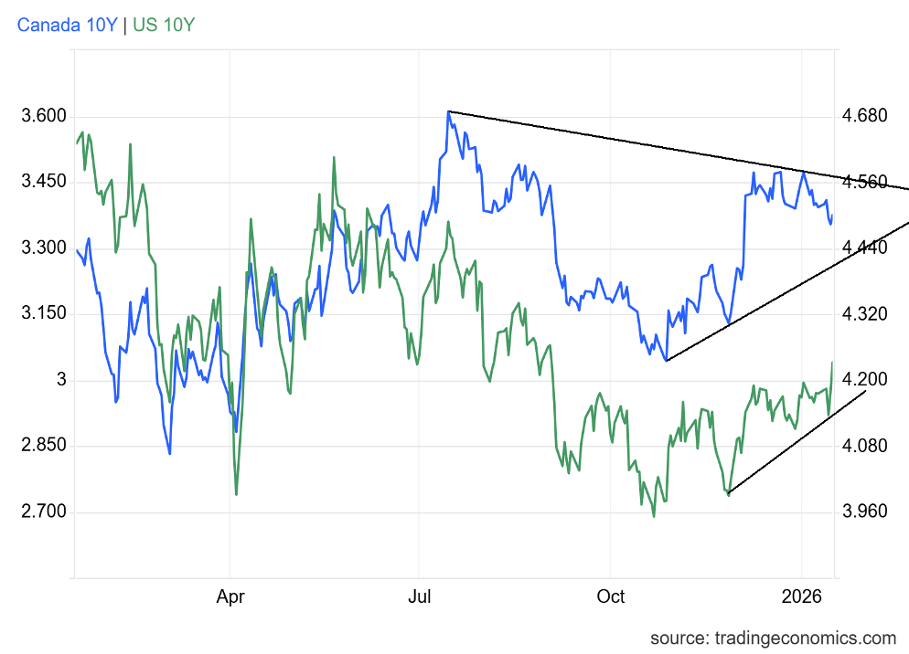 Housing sales were reported, but they are only catching up on September and October. They were higher than expected. As a result of all this, interest rates rose, which is not what Trump wants. But then Trump cannot control the bond market, even if he’s successful appointing someone to do his bidding at the Fed. Canada bond yields were steady at 3.38% vs. 3.39% for the 10-year Canadian Government Bond (CGB).