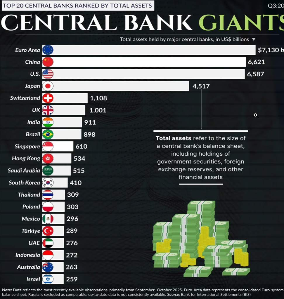 The following chart shows the rankings of the top 20 central banks in the world. The ECB tops the list, followed by PBOC, then the Fed. At any time, the Fed could leap back in the lead if QE programs are elevated. Irrespective of the Fed’s position as to assets, the Fed’s position amongst central banks is unassailable. The Fed is the most preeminent central bank.
