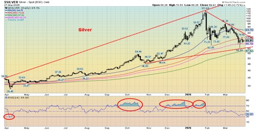 One week does not mean the sell-off is over. We need to see gold take out $5,000 and silver over $90 to suggest and confirm that a low is in. We’d like to see the TGD regain above 1,000. We note that the juniors saw some bids this past week as well. With the Middle East in chaos and the war potentially expanding, gold retains its safe-haven status. It’s indestructible and has no liability, unlike everything else.