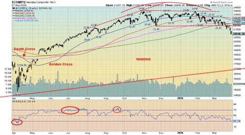 On the week, the S&P 500 fell 2.1% and is now down 7.0% on the year. The DJI fell 0.9%, the DJT gained 1.8% while the NASDAQ was down 3.2%. Surprisingly, the mid-cap and small-cap stocks were somewhat buoyant. The S&P 400 (Mid) was up 0.4% while the S&P 600 (Small) gained 1.1%. Both indices are up slightly up on the year. The S&P 500 Equal Weight Index fell 0.6% and is now down 1.6% in 2026 while the high-tech/AI stocks are being hit with the NY FANG Index down 5.4% and down 15.0% in 2026.