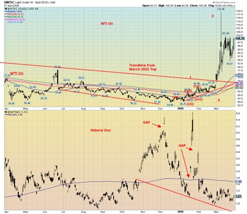 Inflationary pressures from the current war are already being felt with a sharp rise in diesel fuel, jet fuel, and gas at the pump. In turn, we will feel upward price pressure on food and industry, particularly the high-tech economies of Asia such as South Korea and Taiwan. A recession this time around is not out of the question. The Iran war continues as it enters its second month.
