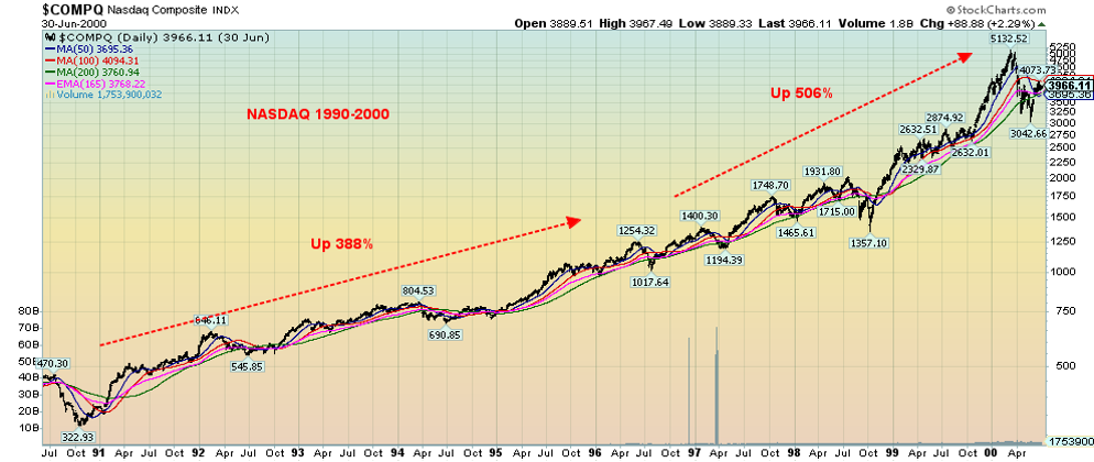 From that low in 1990 to its peak in 2000, the NASDAQ rose almost 16 times. Many individual companies rose even more. Credit was easy. The Fed cut interest rates in the early 1990s. Events like the October 1987 stock market crash and the Iraq war of 1990 were in the rearview mirror. What could go wrong? The Asian financial crisis of 1997 put a dent in things, but its effect was relatively short-lived, and it was ‘’over there.’’
