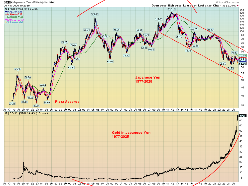 Japanese Yen, Japanese Yen in Gold 1977–2025 (weekly)