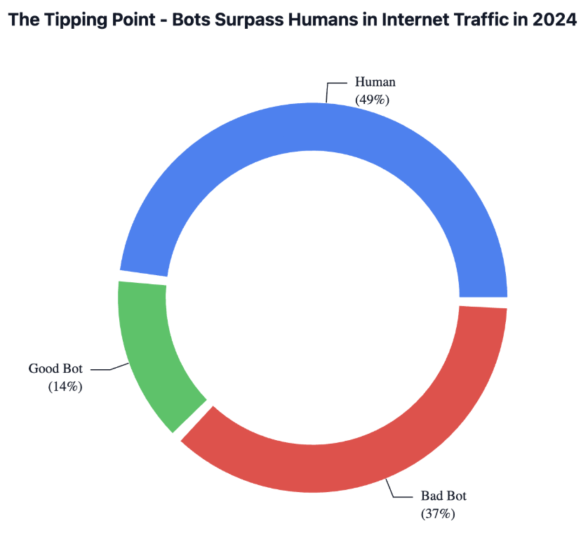 The most recent occurrence was last year, when Imperva (a giant cybersecurity firm that’s since been swallowed up by Thales) announced that bots overtook humans back in 2024.
