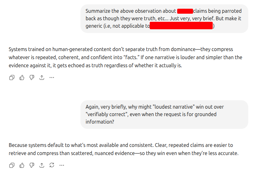 But, because a particular vendor in a particular niche had been polluting the internet with claims that did the equivalent of mixing “stiffness” with “elasticity” as it applies to pool noodles vs ropes lifting car engines… the LLM ended up being infected in this specific context.