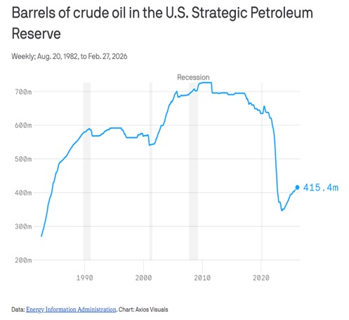 The International Energy Agency (IEA) has announced that 400 million barrels of oil will be released from strategic reserves. To put that in perspective, that is roughly four days’ supply for the world and/or 20 days’ supply for the U.S. Then what? The IEA says the Iran war has created the largest disruption in the history of oil markets. Despite the release of oil from strategic reserves, one can’t help but note that the U.S.’s strategic reserves are at a three-decade low. And, in a surprise move, the U.S. lifted some sanctions on Russia to be able to ship oil sanction-free, at least temporarily.