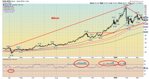 The outbreak of war has pressured stock prices to go lower, the US$ Index to rise, bond yields to rise, and gold/silver to waver. And need we add that the bombing of oil depots in Tehran has caused a potential environmental disaster? The cost of the war? Between $1 billion and $2 billion per day. The first week was reported to cost $11.5 billion. That cost will be added to the already astronomical U.S. debt.