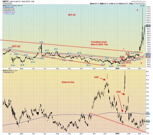 There is very little to say about oil and gas prices, other than one word: “Iran.” The war against Iran has accomplished the one thing that everyone feared but somehow failed to fully realize – that yes, Iran has the capability to shut down the Straits of Hormuz. Oil, natural gas (NG), and now even fertilizers, through nutrients such as sulfur, urea, ammonia, phosphates, and nitrogen, are trapped in the Gulf as well. Many are crucial to global food production. Anywhere from 20% to 40% of these products are effectively trapped. Add in