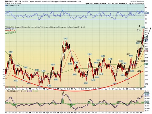TSX Materials Index/TSX Financial Index Ratio 2016–2026