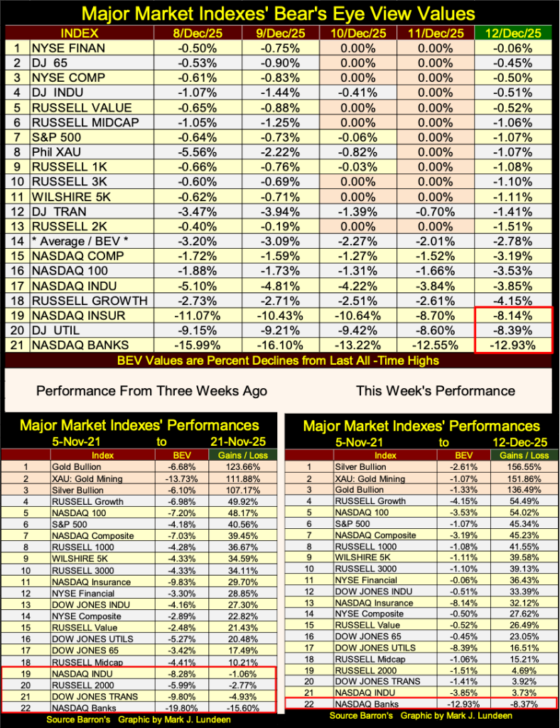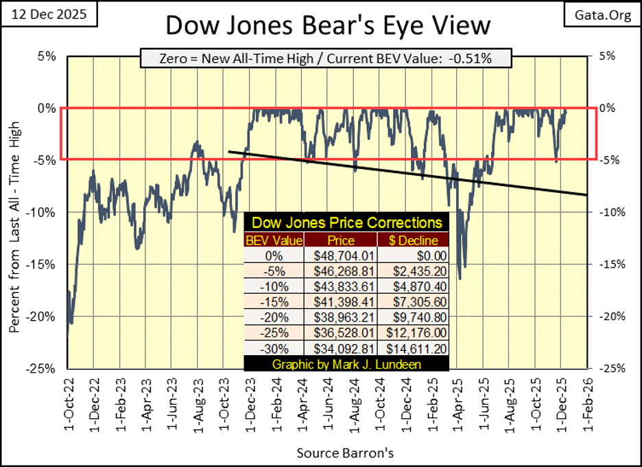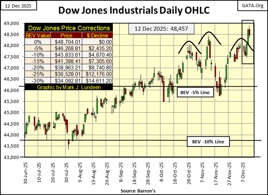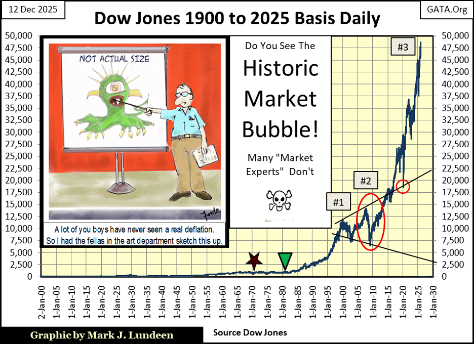 So, when is the bubble seen above going to go bust? I haven’t a clue. A few years ago, I thought it would top out when the Dow Jones’s valuation inflated to something over 30,000. Now in December 2025, apparently this market will top out with the Dow Jones over 50,000. Following that, I’ll be whining about the Dow Jones at 55,000 in the chart above, and then, horror of horrors; Dow Jones at 60,000.