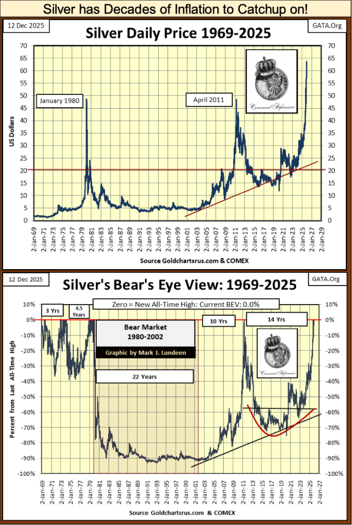 And that might happen. But I wouldn’t be surprised should this amazing advance in silver continue for a good while longer, without a correction, as silver for many decades, has endured not one profound bear market, but two, since January 1980, as seen in the charts below.
