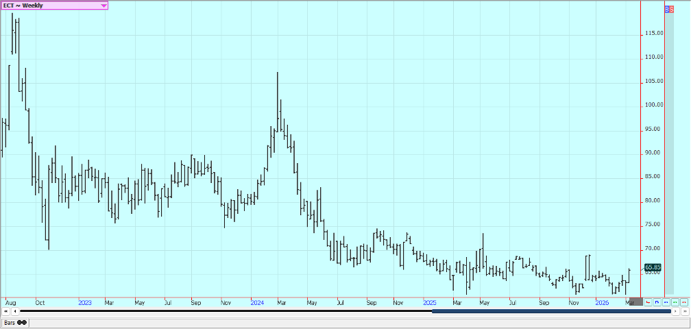 Cotton: Cotton was higher last week on the war with Iran and as the weekly export sales report was somewhat positive despite demand fears as the war with Iran continues that could curb export demand for US Cotton, Much of the demand for Cotton comes from the Middle East and Southeast Asia but thee costs of production have increased dramatically because of the war.