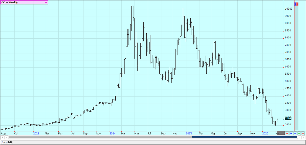 Cocoa: New York and London closed a little higher in choppy trading last week. Short term trends are mixed in both markets. A big main crop harvest has arrived in West Africa and rains have been positive for the next crop. There are still reports of increased production potential in other countries outside of West Africa, including Asia and Central America.