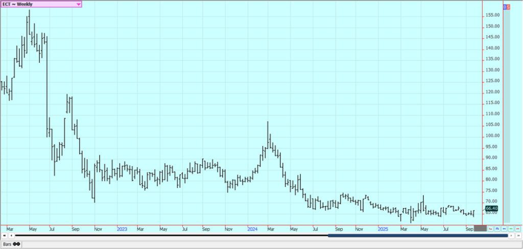 Cotton: Cotton was higher last week in sideways trading and as the US government has continued to be shut down. The US Dolar remains high to hurt upside potential and demand ideas. There are no more USDA reports coming due to the closure. The US harvest has started in most areas and initial yield reports are positive.