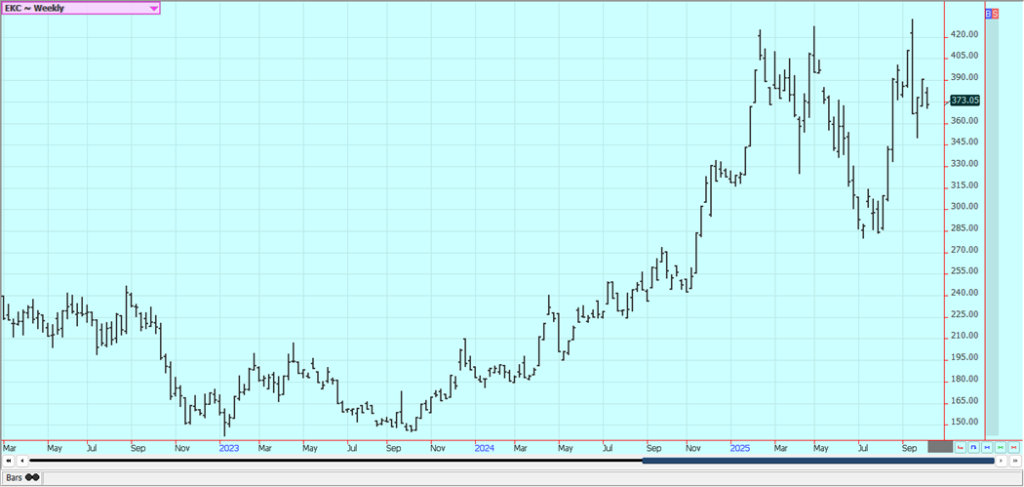 Coffee: New York and London were both lower last week. Ideas are that a Trump-Lula meeting could happen at the ASEAN summit in late October but nothing has been confirmed. Reports indicated that the weather in Brazil will improve. Dry conditions have been reported in Coffee production areas lately and rains are expected to return over the next couple of weeks.