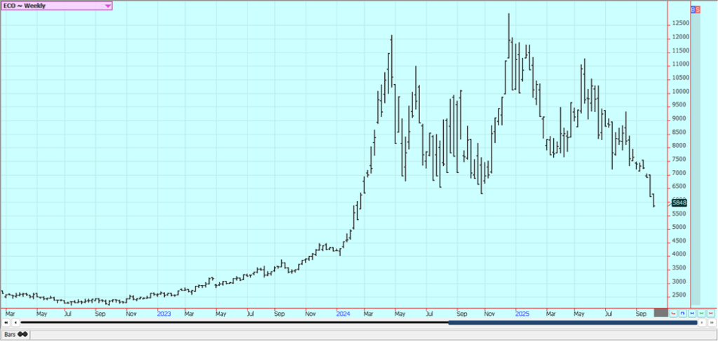 Cocoa: Both markets closed lower last week and New York closed at new lows for the move on Friday. Demand concerns in West Africa continue. Bigger supplies are expected at West Africa ports soon as Ivory Coast has raised the farmgate price paid to farmers and they are expected to sell. Ghana has also raised farmgate prices.