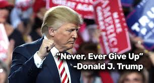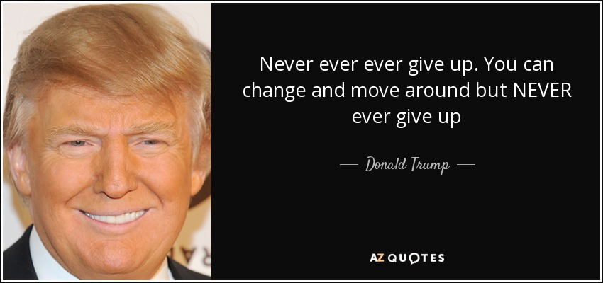 We all know the phrase “never give up” is more or less associated with Trump these days.